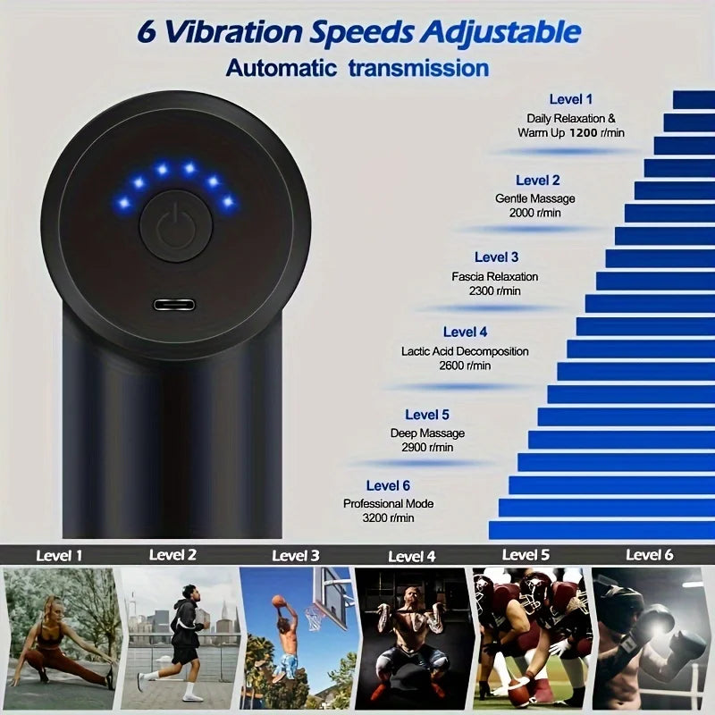 Portable Massage Gun,6 Speeds for Muscle Pain Relief,Back Neck Shoulder Deep Tissue Massager