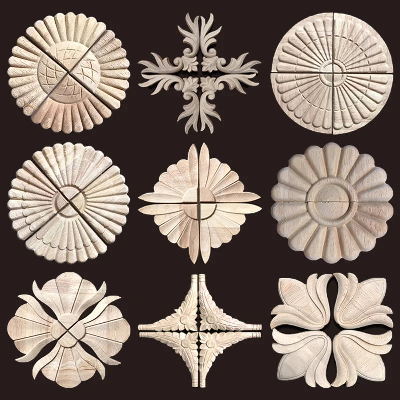 Small Round Wood Carving Applique Wood Figurines Mouldings Decal Home Decor Items Wood Decoration for Furniture Flower Crafting