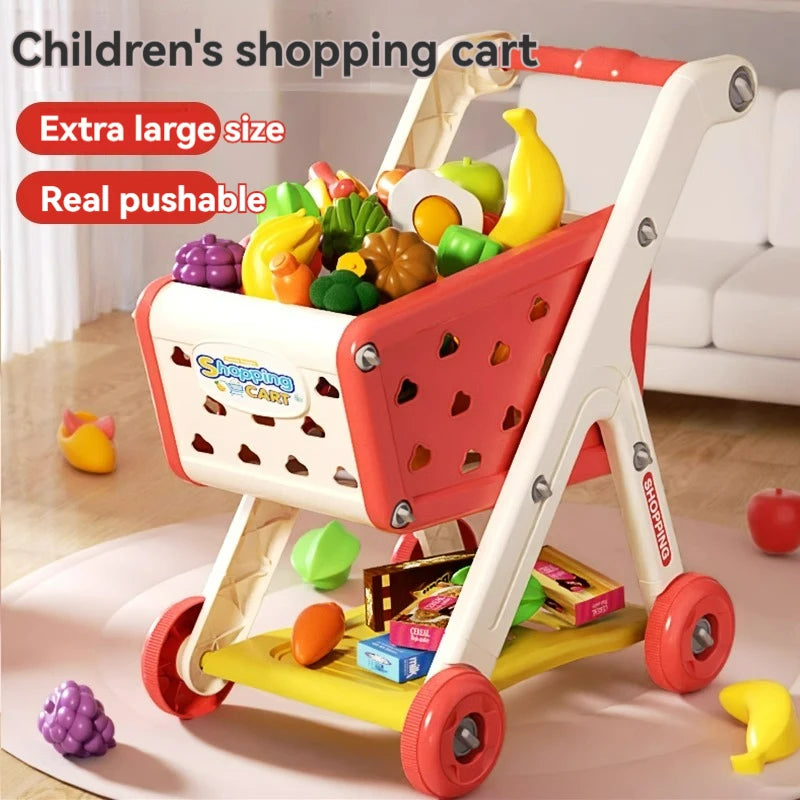 New Children Toys Kids Large Supermarket Shopping Cart Trolley Push Car Toys Basket Simulation Fruit Food Pretend Birthday Gifts