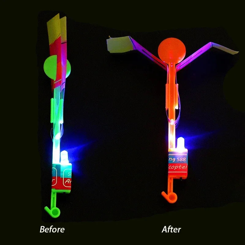 1/3/5/10/20/50/100pcs Amazing Light Toy Arrow Rocket Helicopter Flying Toy LED Light Toys Party Fun Gift Rubber Band Catapult