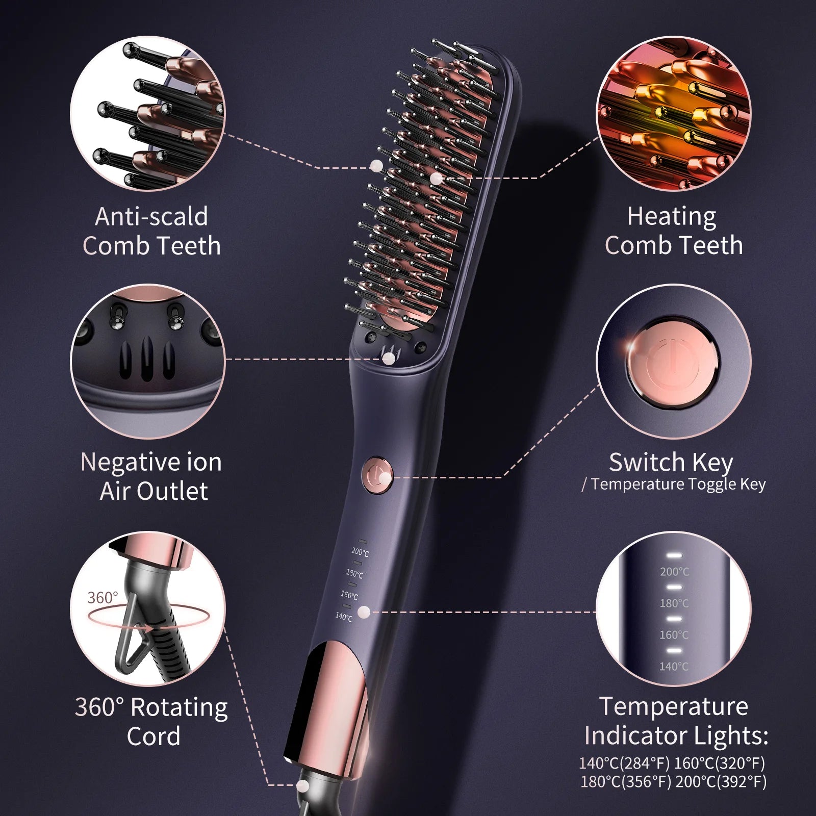 Kensen beard straightener Brush Comb Hair Straightener Men Quick Beard Straightening Curling Styling Negative Iron Heating Comb