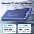 Stay powered up wherever you go with the QOOVI 20000mAh Power Bank, your ultimate portable charging solution. Designed for efficiency and versatility, this high-capacity external battery features PD 45W fast charging to ensure your devices, from laptops to smartphones, receive a rapid power boost.